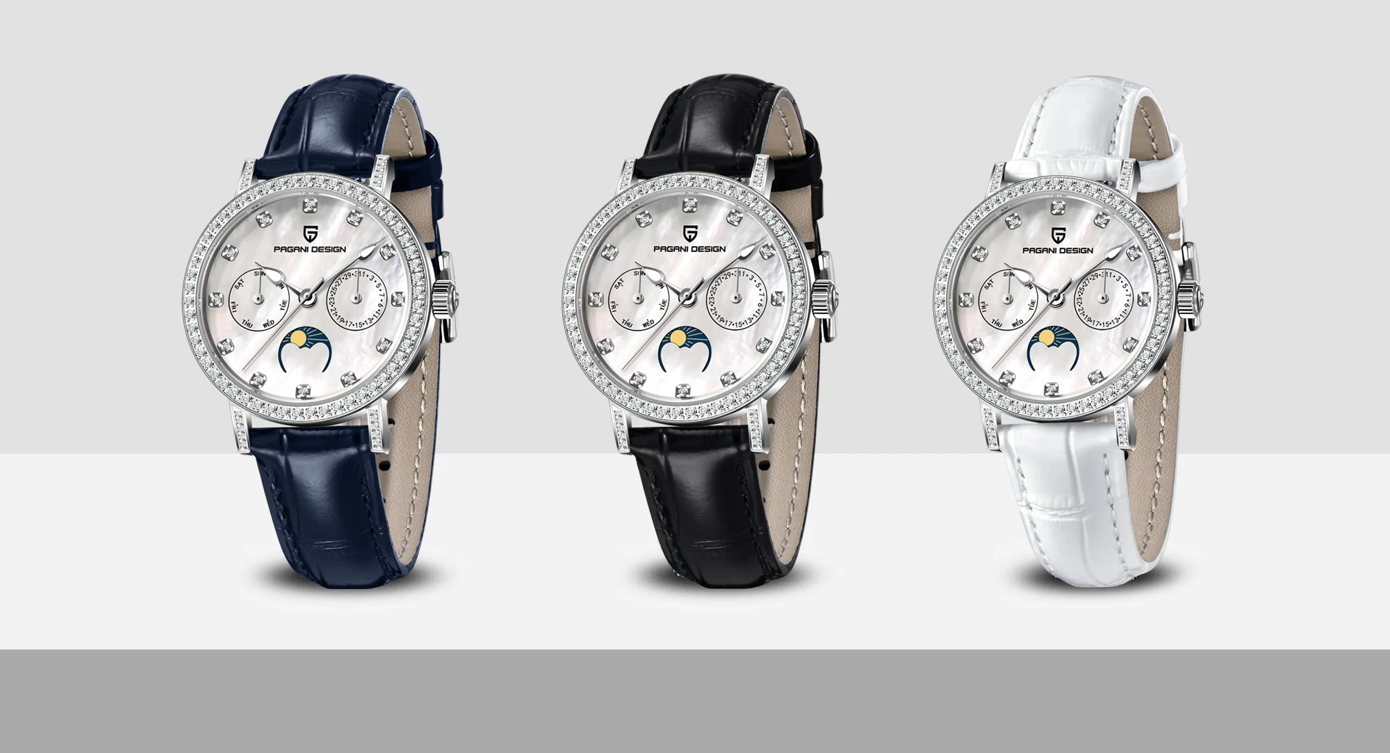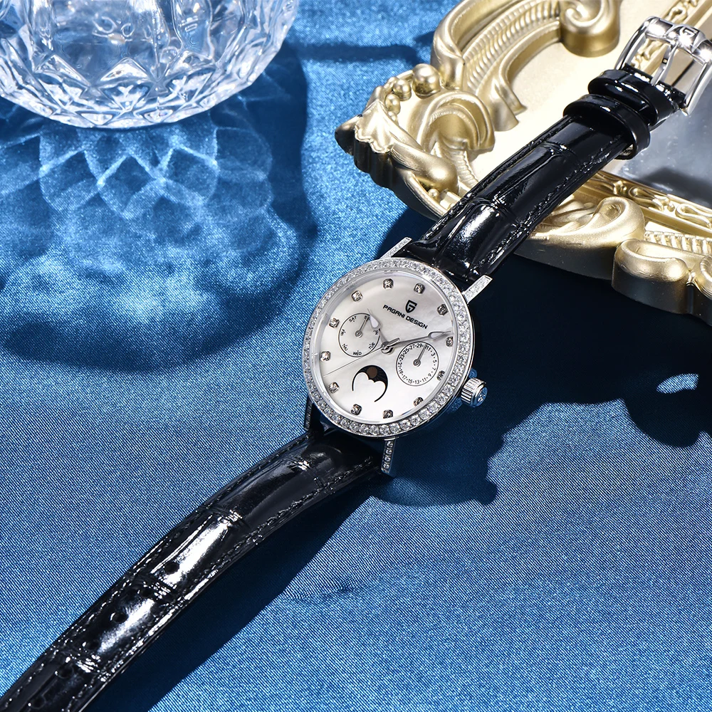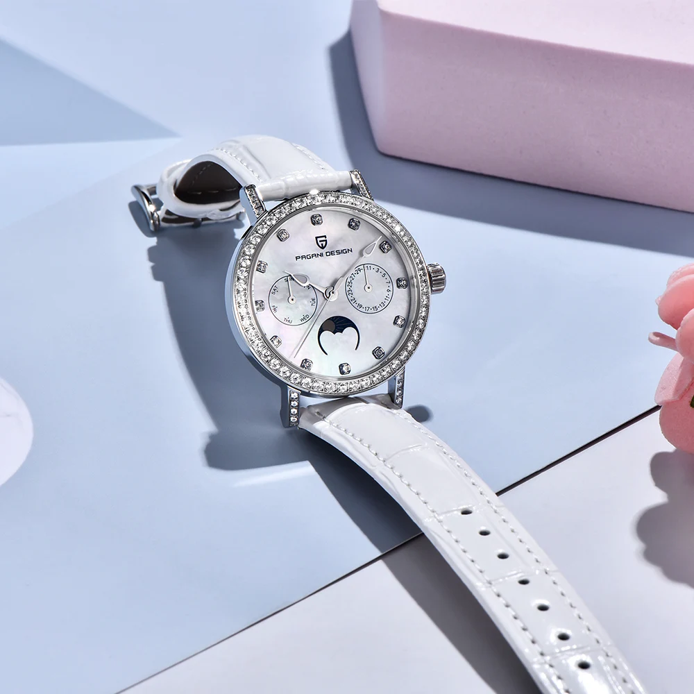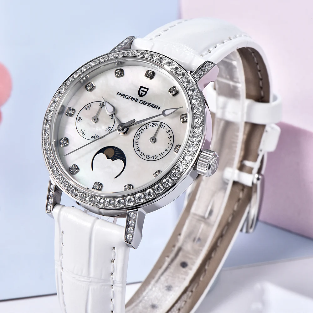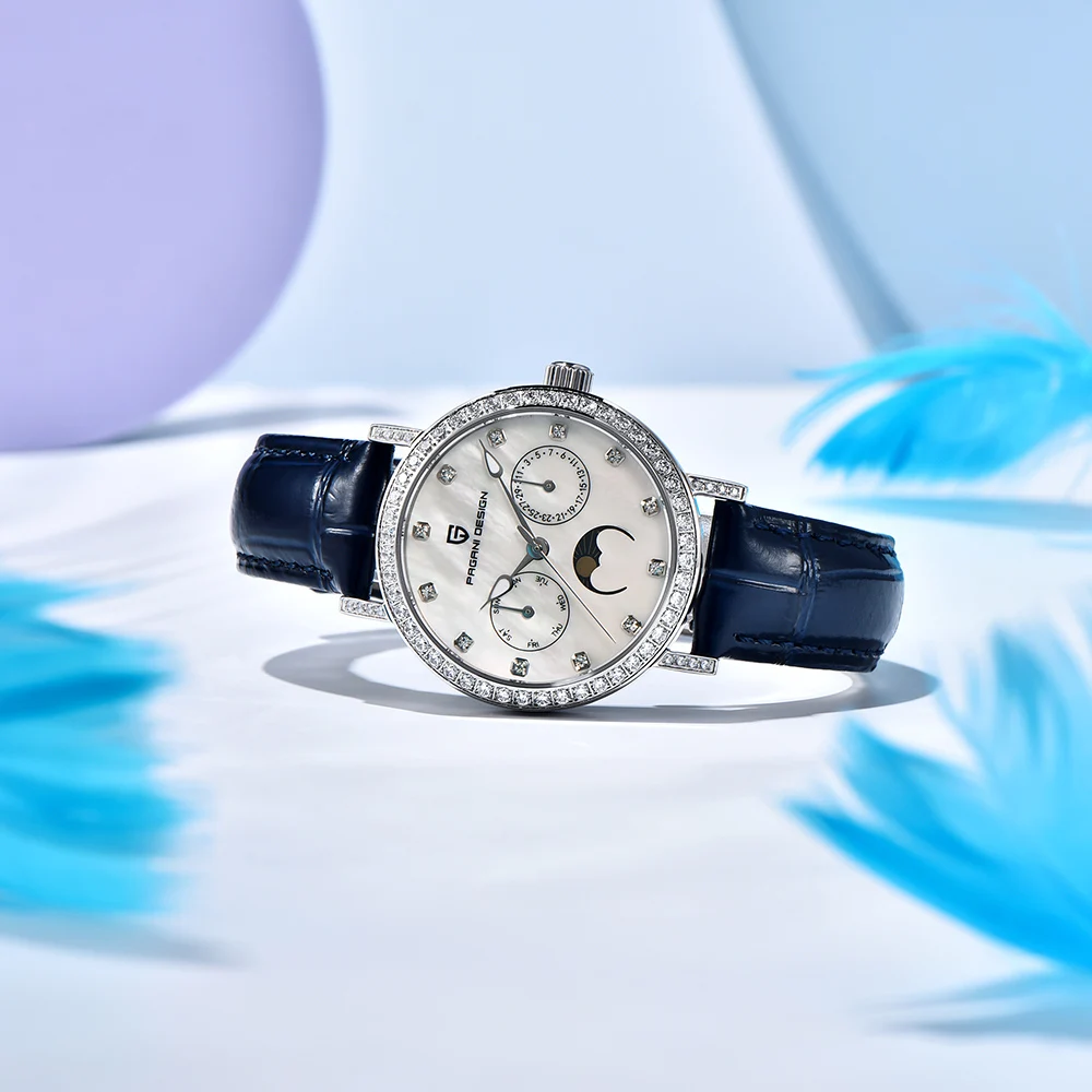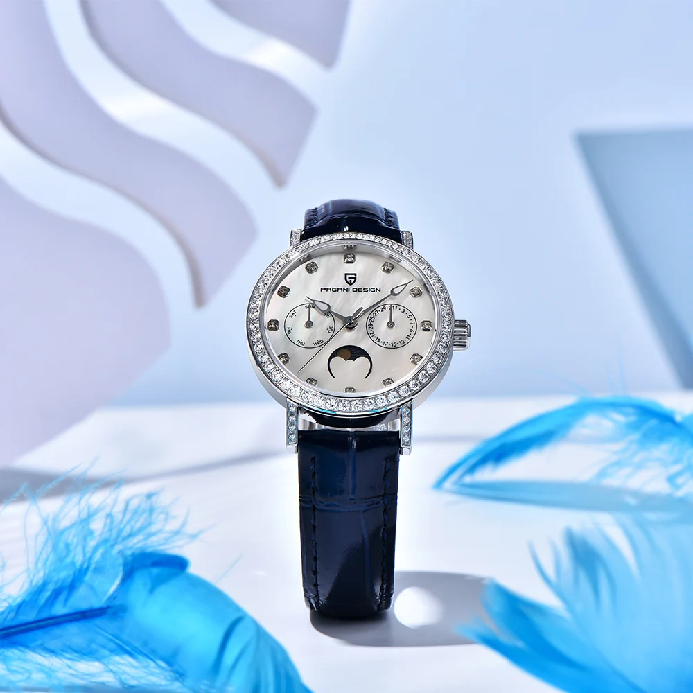Präzises Quarzwerk mit automatischer Datums- und Mondphasenanzeige