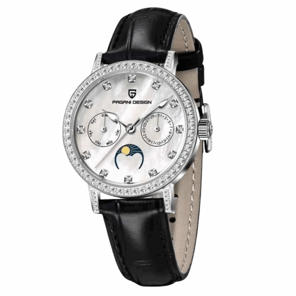 Präzises Quarzwerk mit automatischer Datums- und Mondphasenanzeige